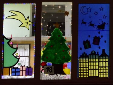 Aus dem ursprünglichen Wettbewerb - wer gestaltet das schönste Adventsfenster - ist ein tolles Gemeinschaftsprojekt geworden, auf das die gesamt Schulgemeinschaft stolz sein kann.