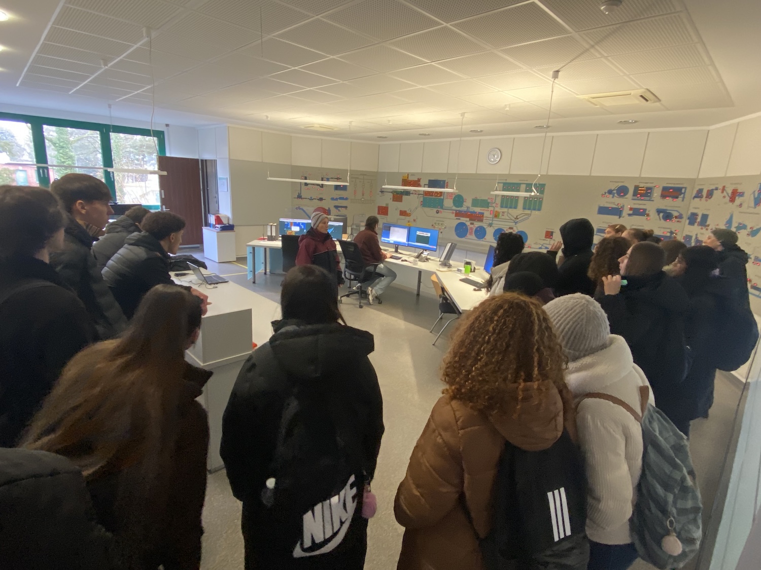 Besonders interessant war, dass in der Kläranlage auch Taucher arbeiten. Sie kontrollieren Becken und Rohre unter Wasser. Außerdem gibt es eine große Wandmosaik-Anzeige, auf der die gesamte Kläranlage digital dargestellt ist. Damit können alle Abläufe überwacht und gesteuert werden. In der Kläranlage arbeiten viele Fachleute, zum Beispiel Fachkräfte für Abwassertechnik, Industriemechaniker, Elektroniker, Chemielaboranten und Ingenieure. Für diese Berufe sind verschiedene Ausbildungen und technisches Wissen nötig.