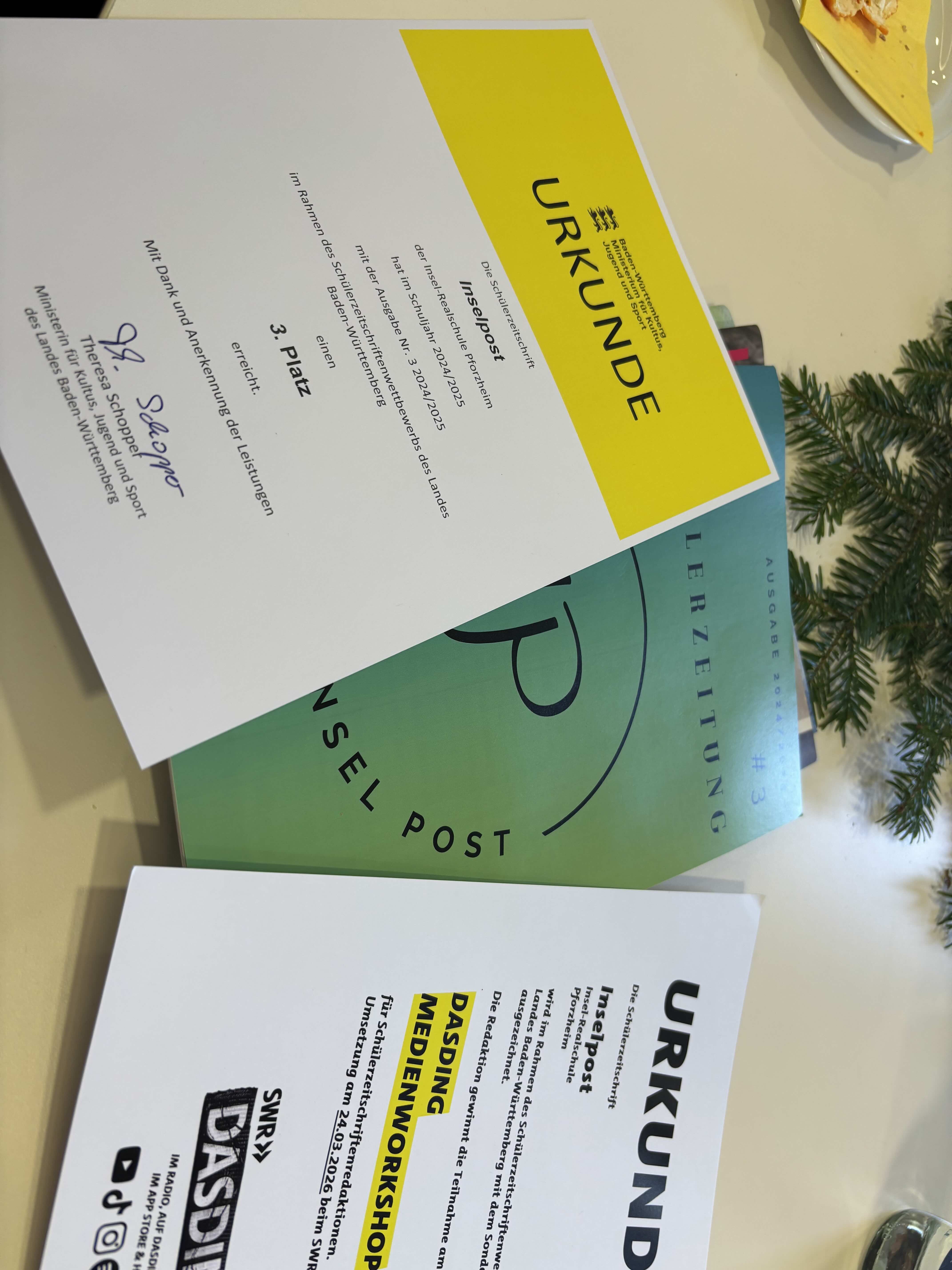 Am 12.12.25 wurde das Inselpost Team nach Stuttgart ins Kultusministerium eingeladen, weil wir bei einem Schülerzeitungswettbewerb mitgemacht haben.