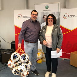 4 Schülerinnen und 10 Schüler wurden von Timo Fuhrmann, Thilo Heintz, Helin Aslan und Alexandra Grein in dieser 40-stündigen Schulung in Theorie und Praxis in den Kinderfußball eingeführt.
